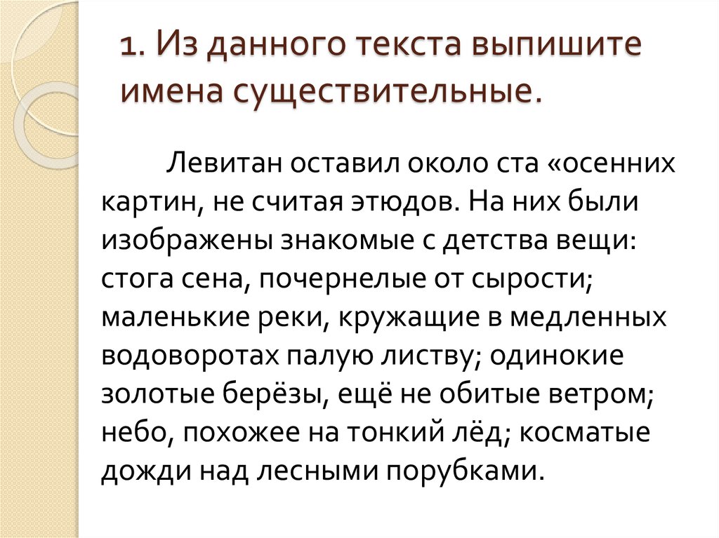 1. Из данного текста выпишитеимена существительные.