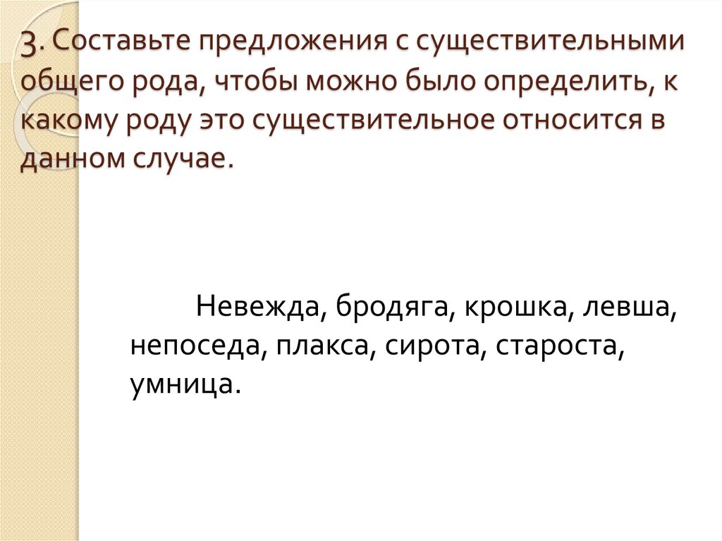 3. Составьте предложения с существительнымиобщего рода, чтобы можно было определить, к