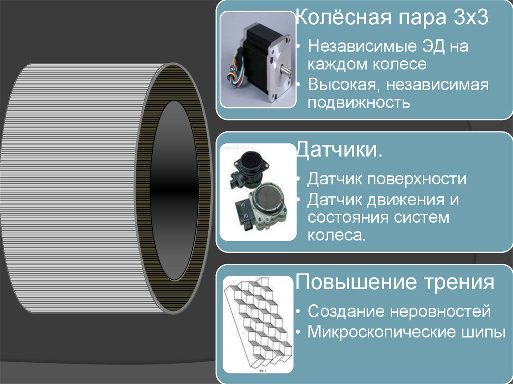 Колёсная пара 3х3• Независимые ЭД на