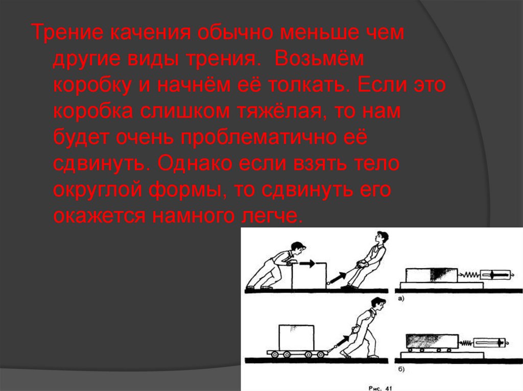 Трение качения обычно меньше чемдругие виды трения. Возьмём