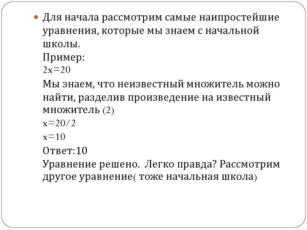 уравнения. Начальная школа – это лишь