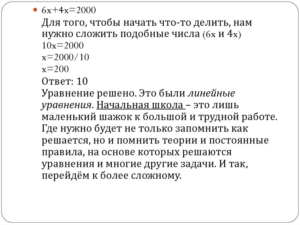 6x+4x=2000Для того, чтобы начать что-то делить, нам