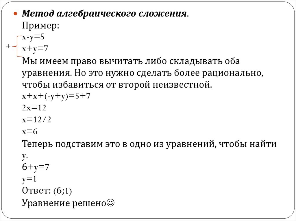 Метод алгебраического сложения.+