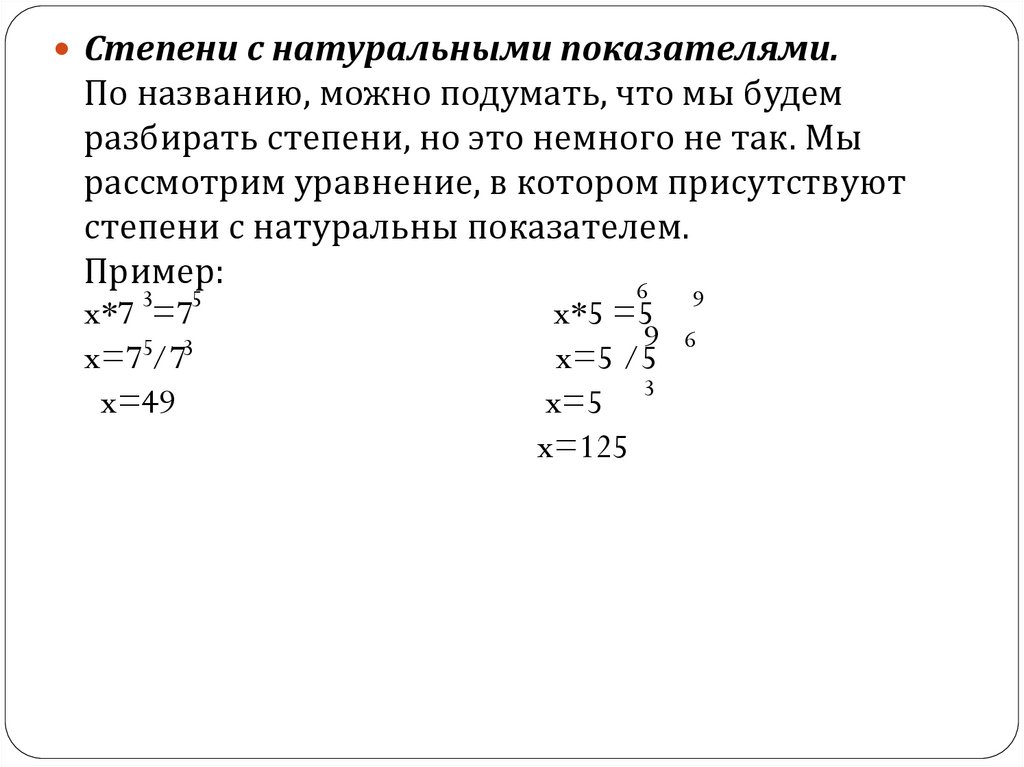 разбирать степени, но это немного не так. Мы