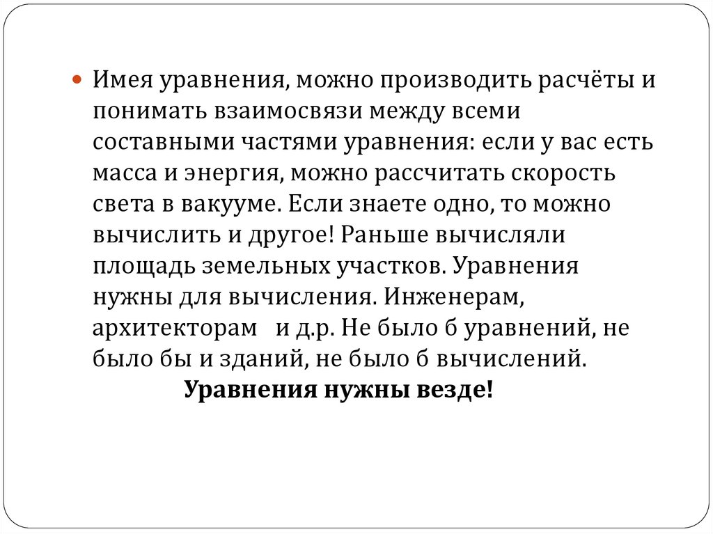 архитекторам и д.р. Не было б уравнений, не