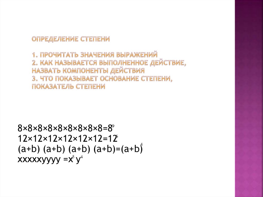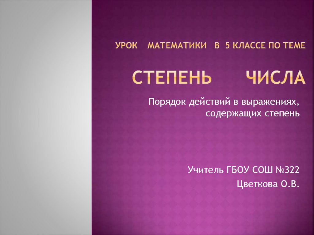 Степень числа. Порядок действий в выражениях, содержащих степень. 5 класс