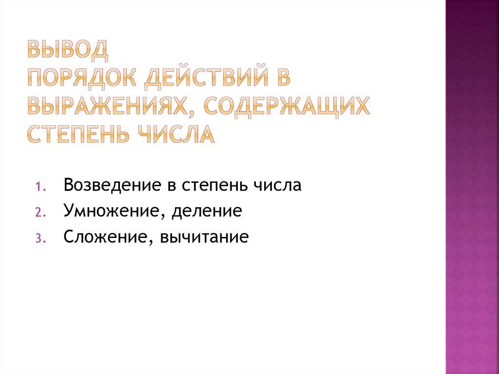 Порядок действий в выражениях,содержащих степень