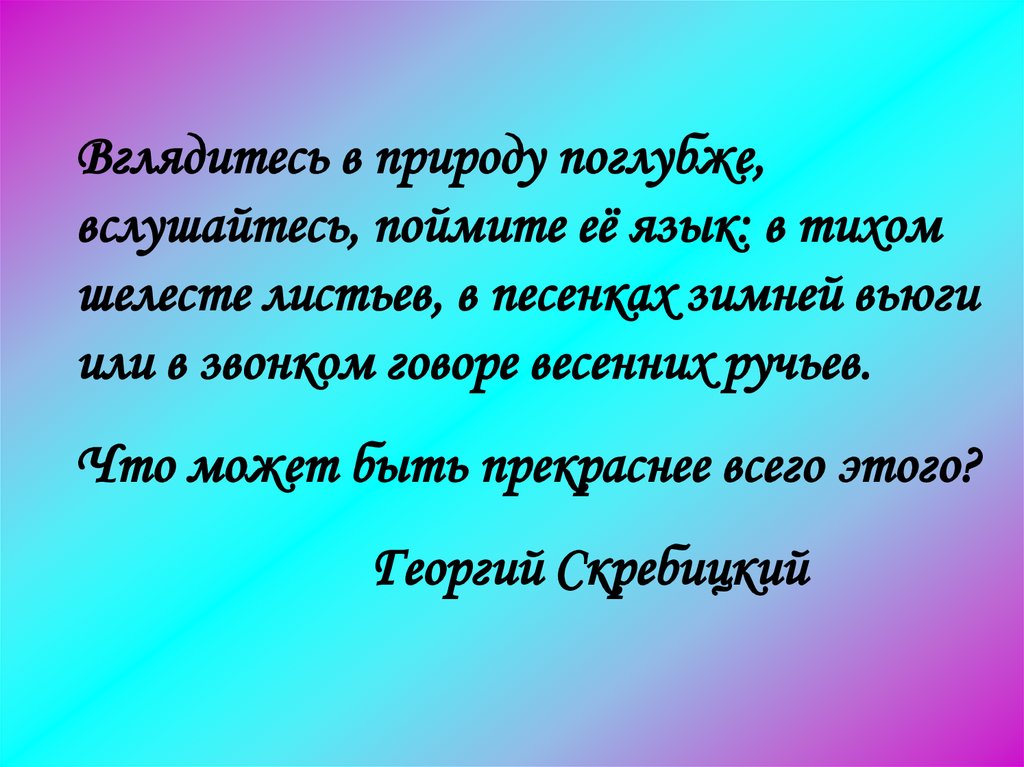 Вглядитесь в природу поглубже,вслушайтесь, поймите её язык: в тихом