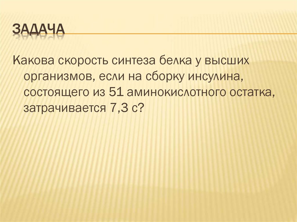 ЗАДАЧАКакова скорость синтеза белка у высших