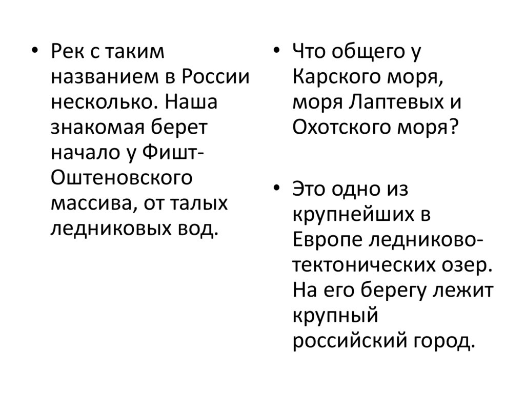 • 1. Байкал, Ладожское, Онежское.• 2. Ханка, Чаны, Онежское.