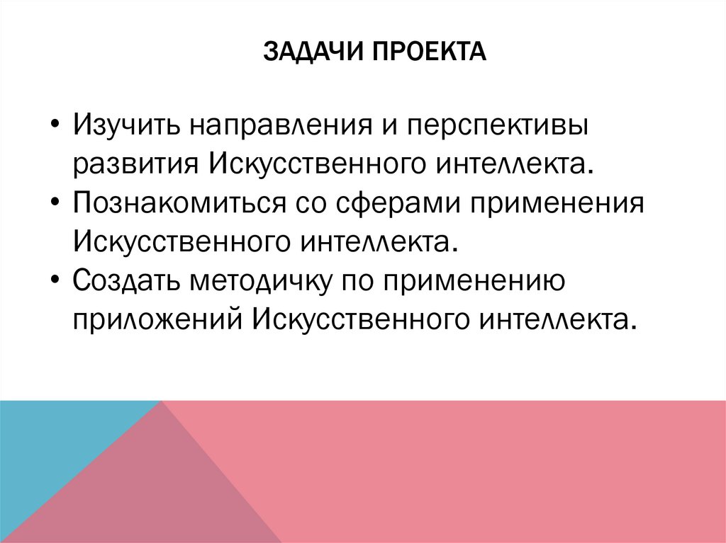 ЗАДАЧИ ПРОЕКТА• Изучить направления и перспективы