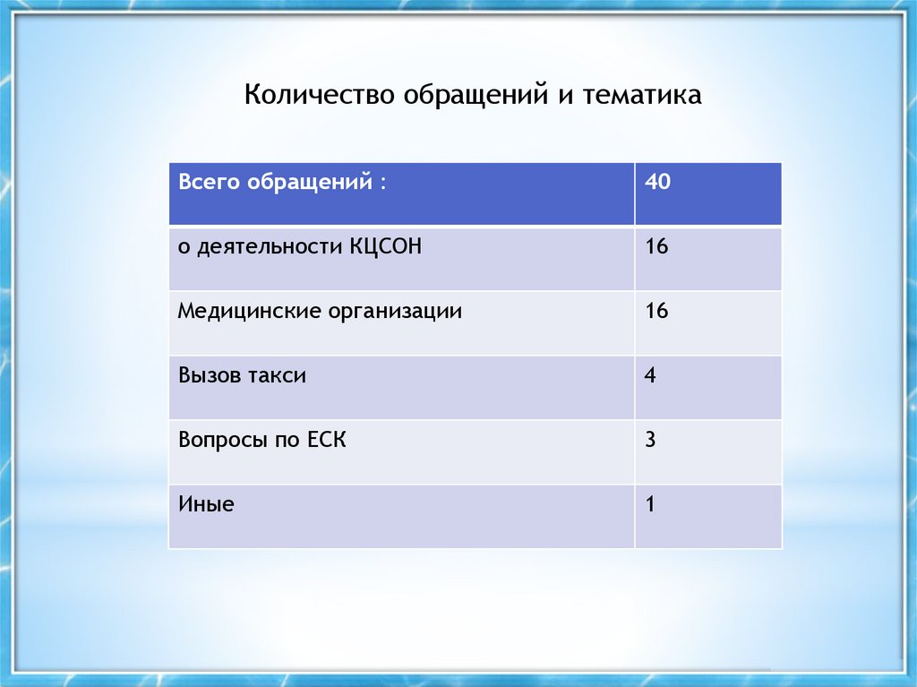 Количество обращений и тематикаВсего обращений :