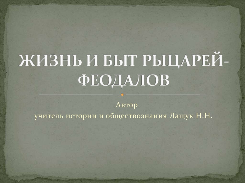 Жизнь и быт рыцарей-феодалов