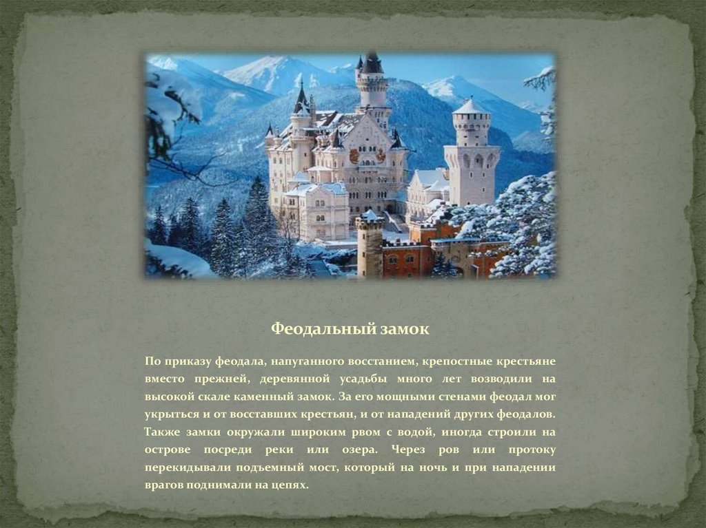 укрыться и от восставших крестьян, и от нападений других феодалов.