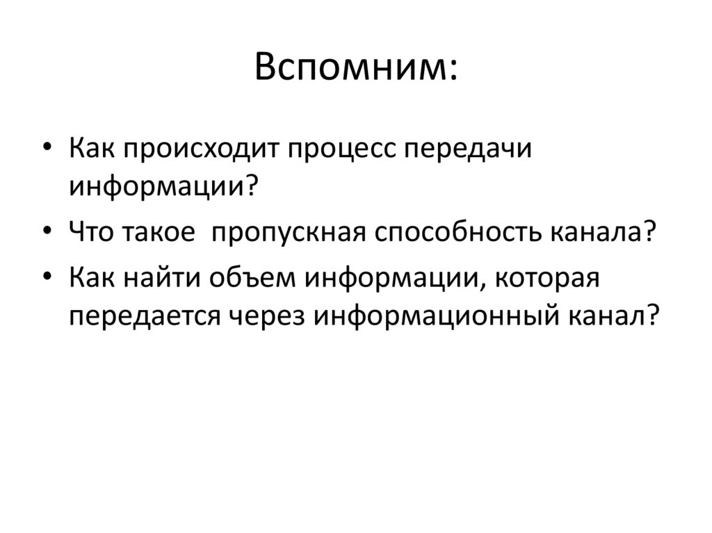 Вспомним:• Как происходит процесс передачи