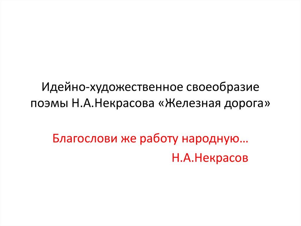 Идейно-художественное своеобразиепоэмы Н.А.Некрасова «Железная дорога»