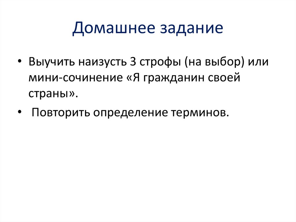 Домашнее задание• Выучить наизусть 3 строфы (на выбор) или