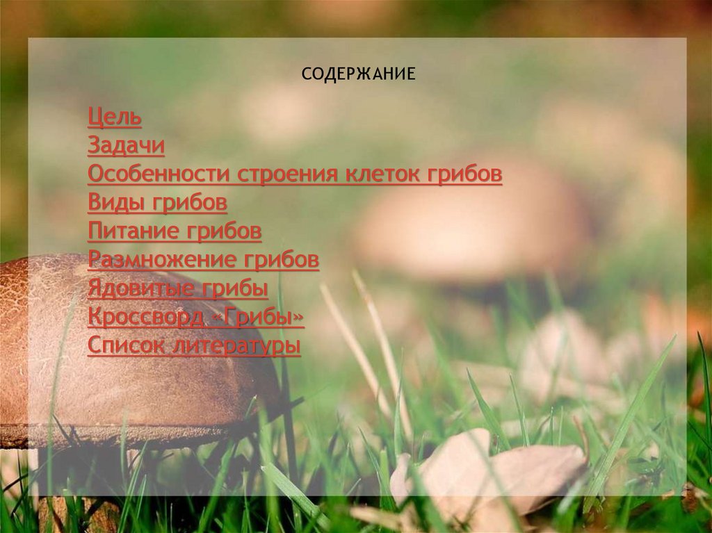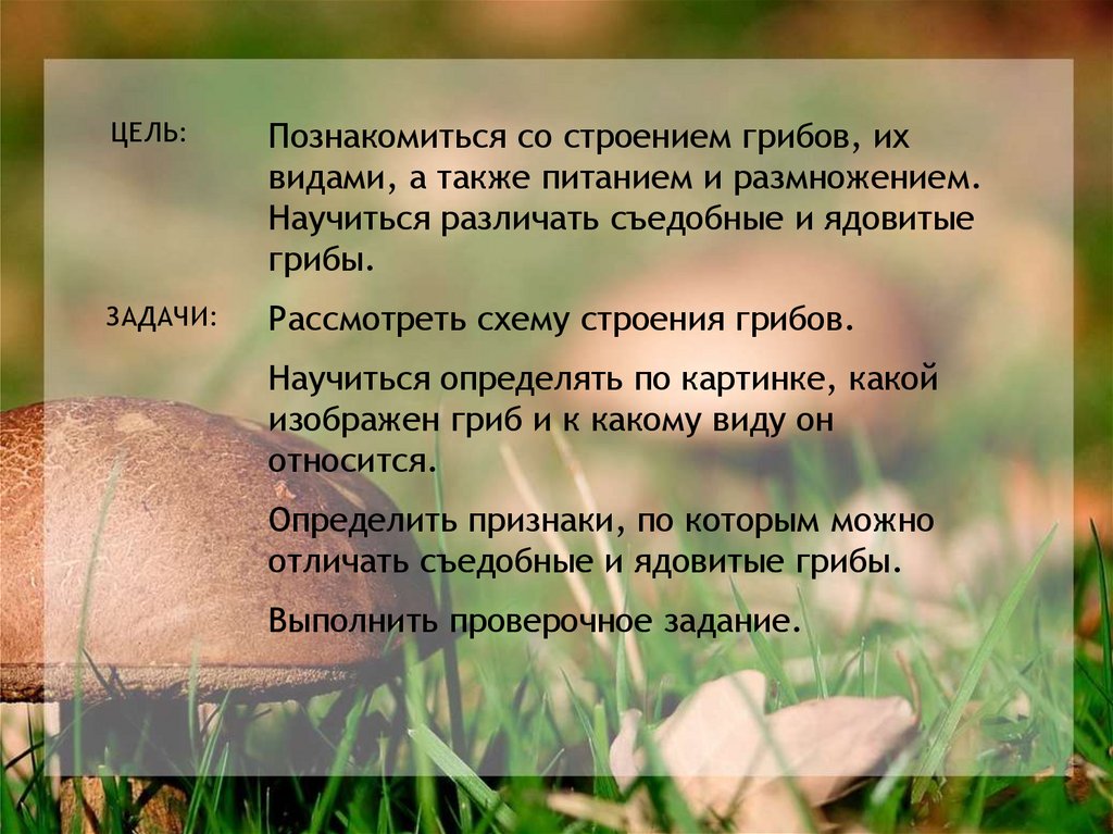 ЦЕЛЬ:Познакомиться со строением грибов, их