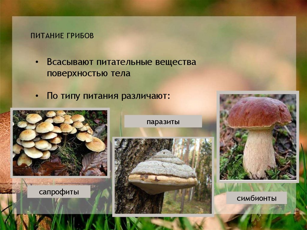 ПИТАНИЕ ГРИБОВ• Всасывают питательные вещества