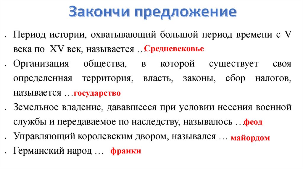 Период истории, охватывающий большой период времени с Vвека по XV век, называется …Средневековье