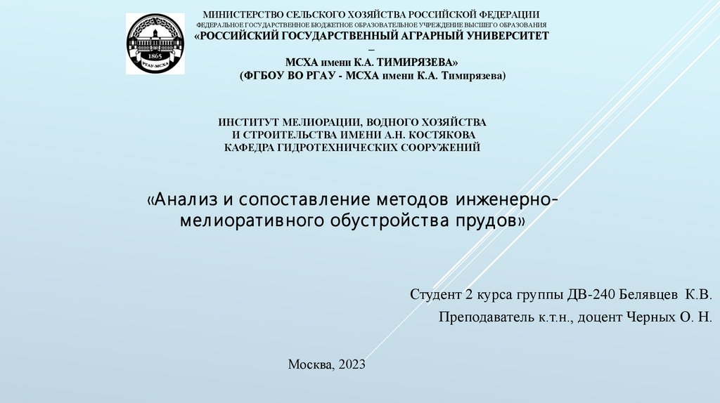 (ФГБОУ ВО РГАУ - МСХА имени К.А. Тимирязева)