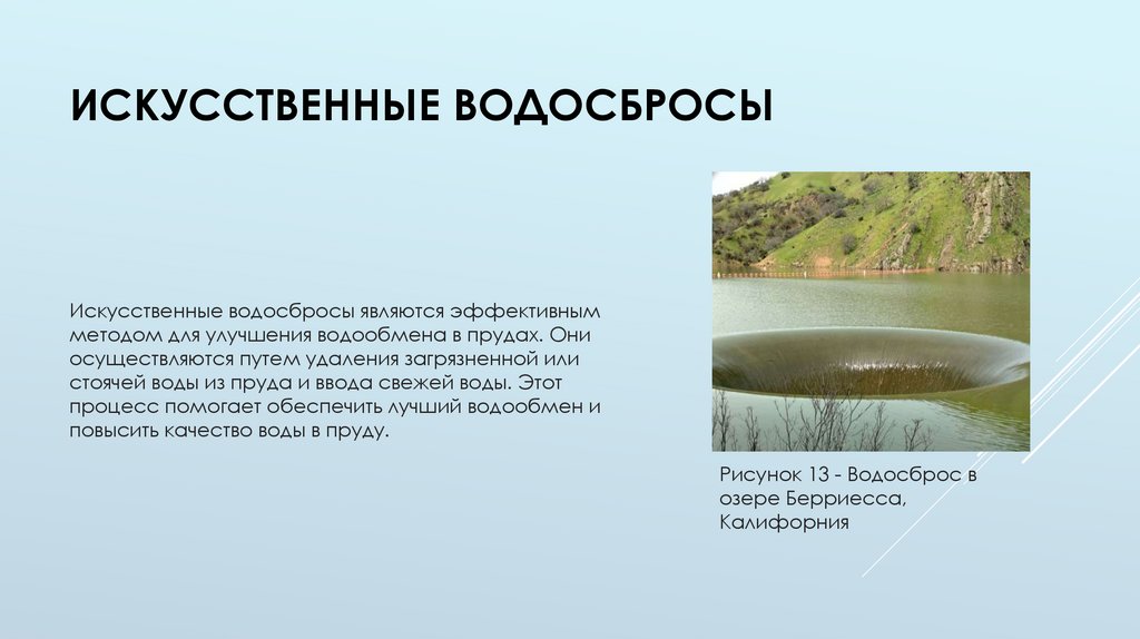 стоячей воды из пруда и ввода свежей воды. Этот