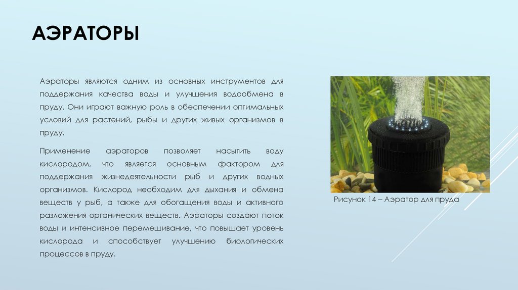 разложения органических веществ. Аэраторы создают поток