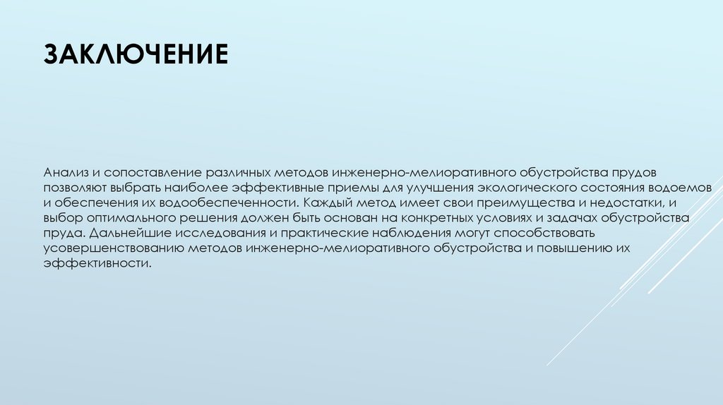 ЗАКЛЮЧЕНИЕАнализ и сопоставление различных методов инженерно-мелиоративного обустройства прудов