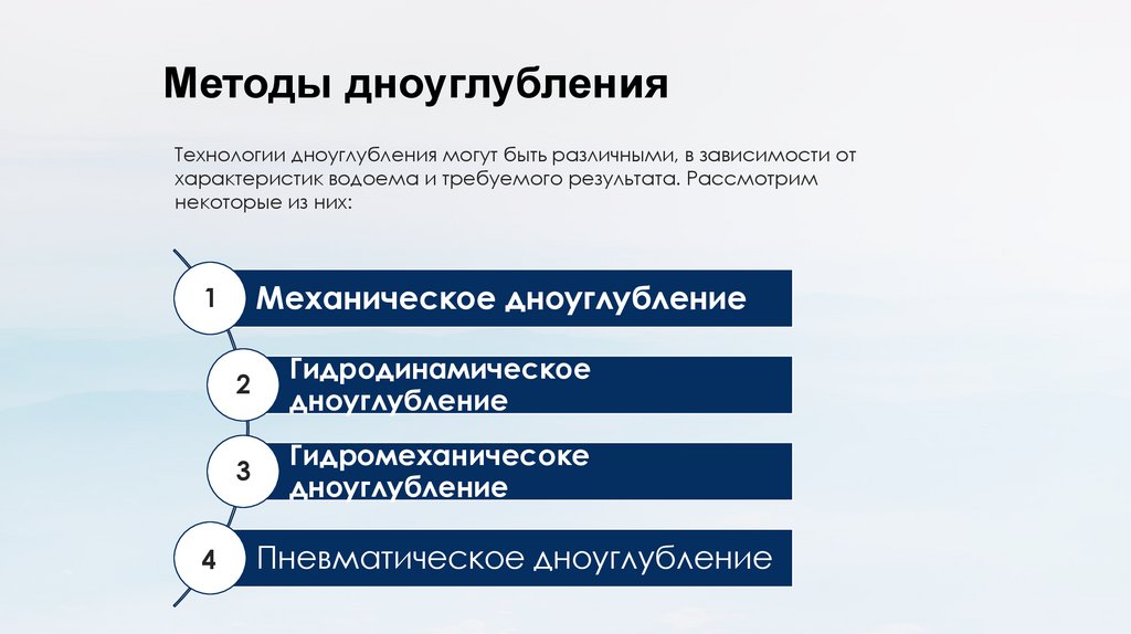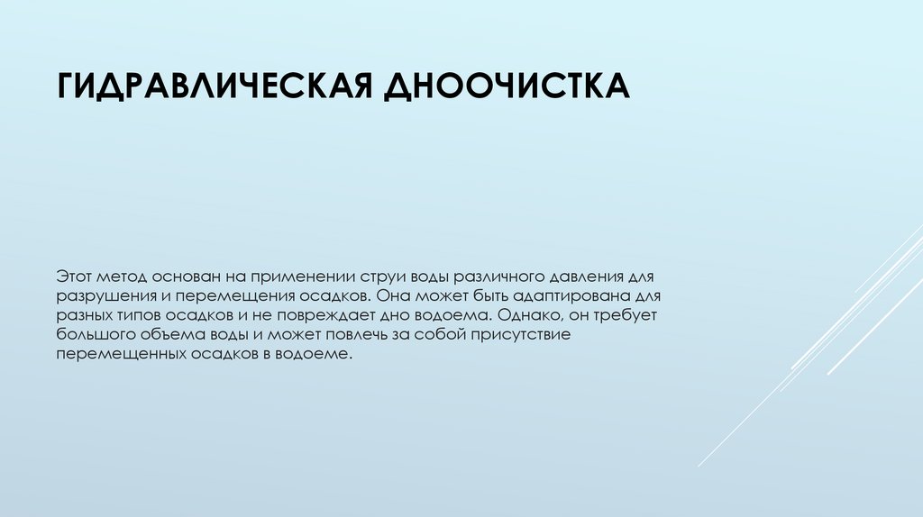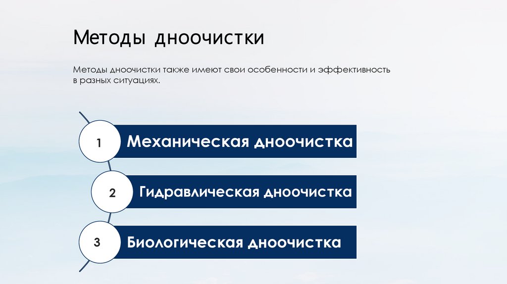 Методы дноочисткиМетоды дноочистки также имеют свои особенности и эффективность