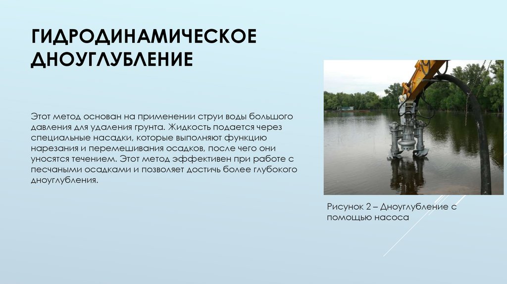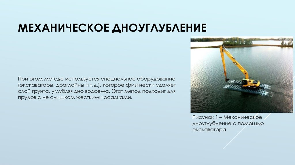 слой грунта, углубляя дно водоема. Этот метод подходит для