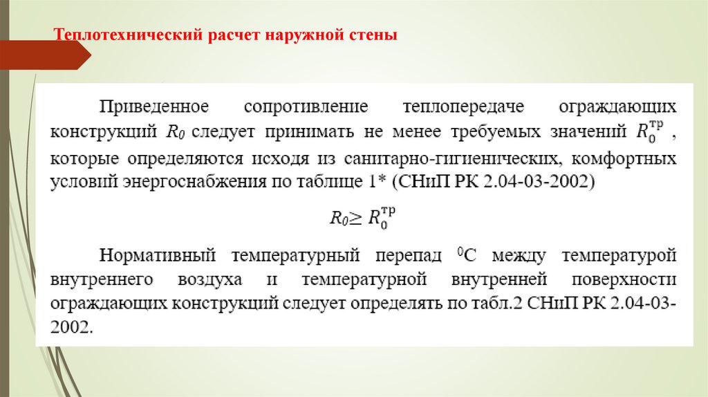 Теплотехнический расчет наружной стены
