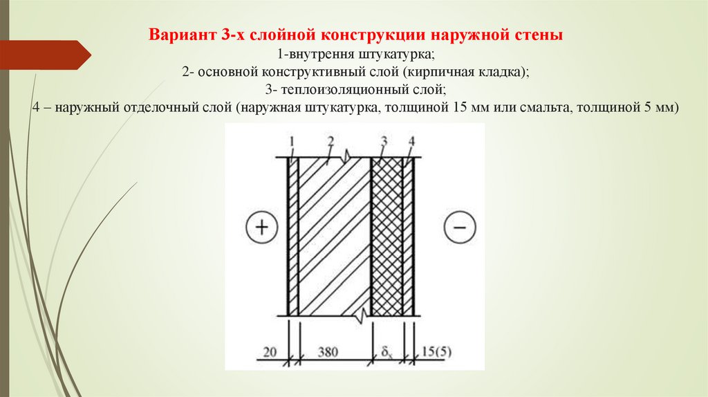 Вариант 3-х слойной конструкции наружной стены1-внутрення штукатурка;
