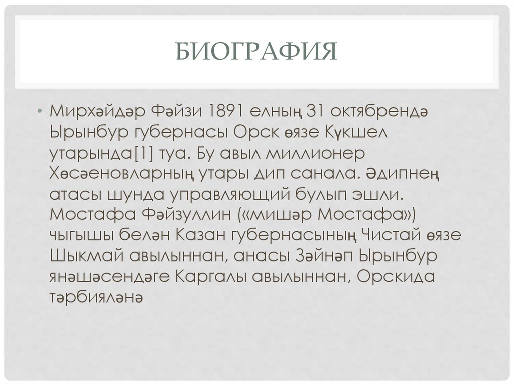 БИОГРАФИЯ• Мирхәйдәр Фәйзи 1891 елның 31 октябрендә