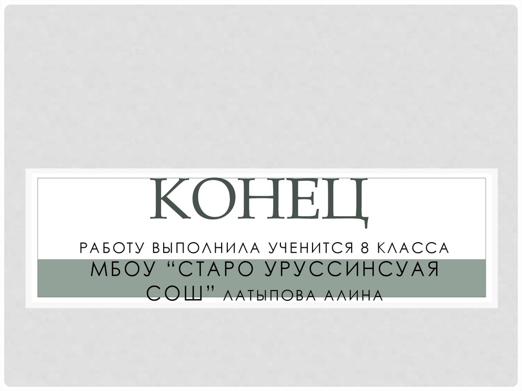 КОНЕЦРАБОТУ ВЫПОЛНИЛА УЧЕНИТСЯ 8 КЛАССА
