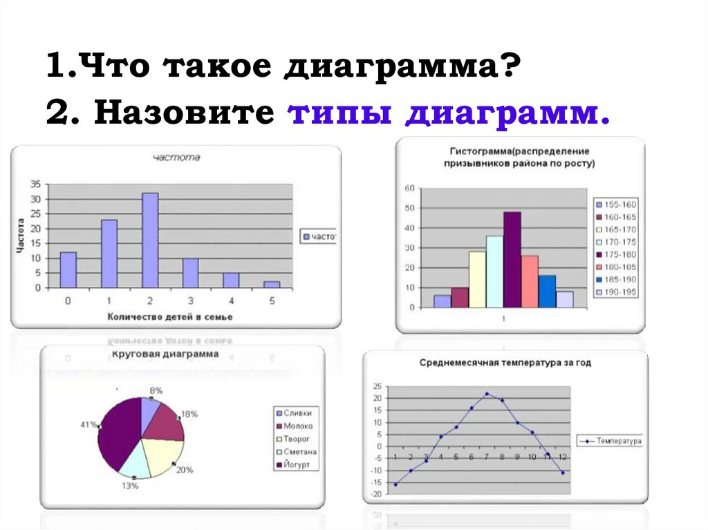 1.Что такое диаграмма?2. Назовите типы диаграмм.