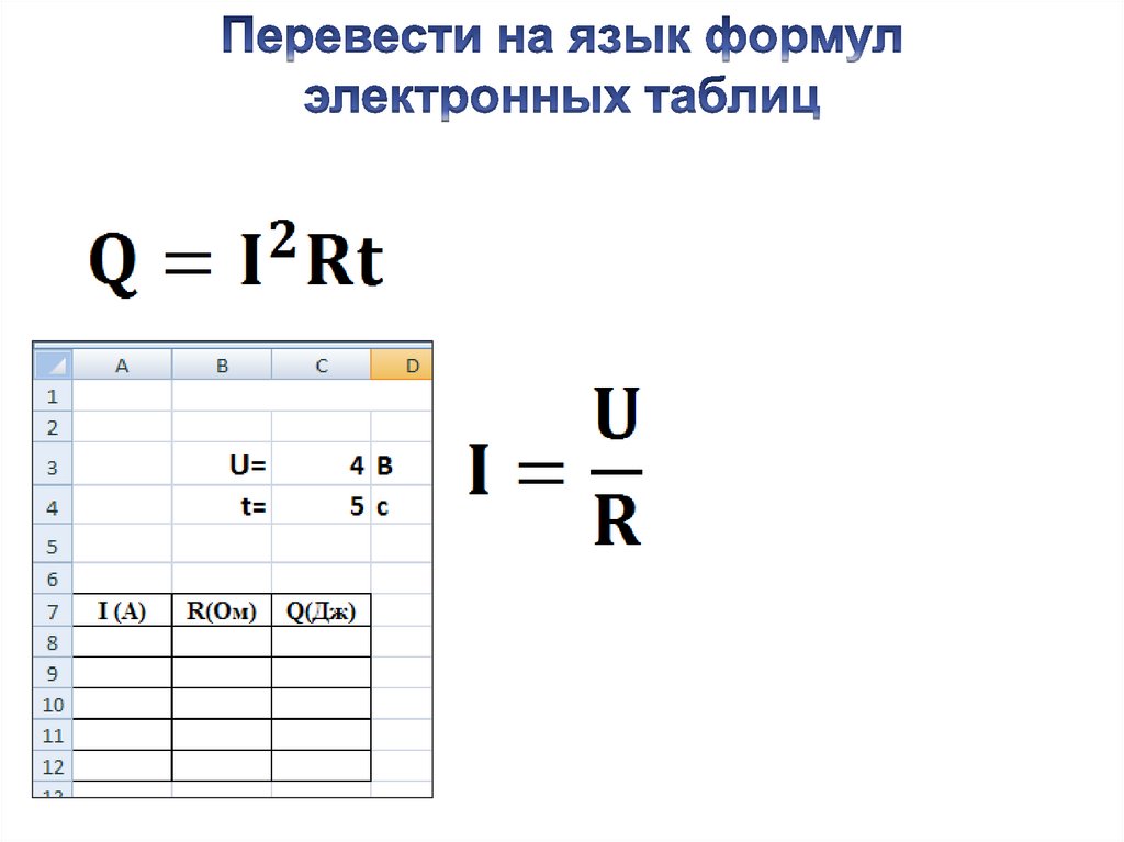 электронных таблицах: