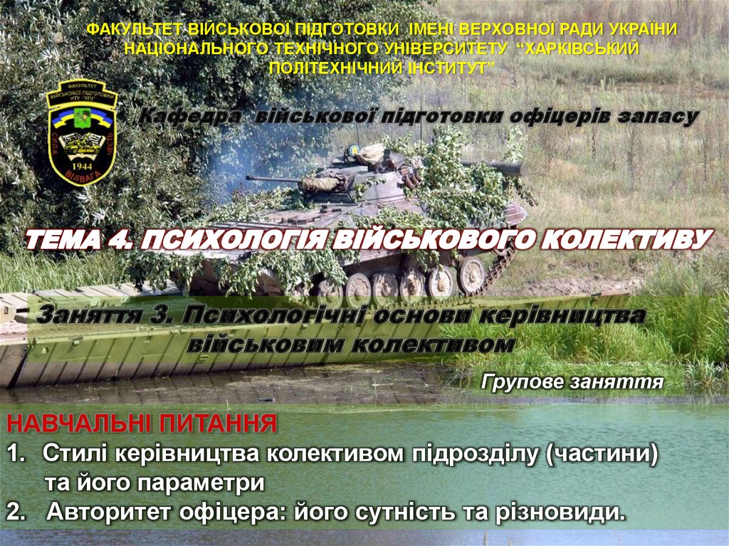 ФАКУЛЬТЕТ ВІЙСЬКОВОЇ ПІДГОТОВКИ ІМЕНІ ВЕРХОВНОЇ РАДИ УКРАЇНИНАЦІОНАЛЬНОГО ТЕХНІЧНОГО УНІВЕРСИТЕТУ “ХАРКІВСЬКИЙ