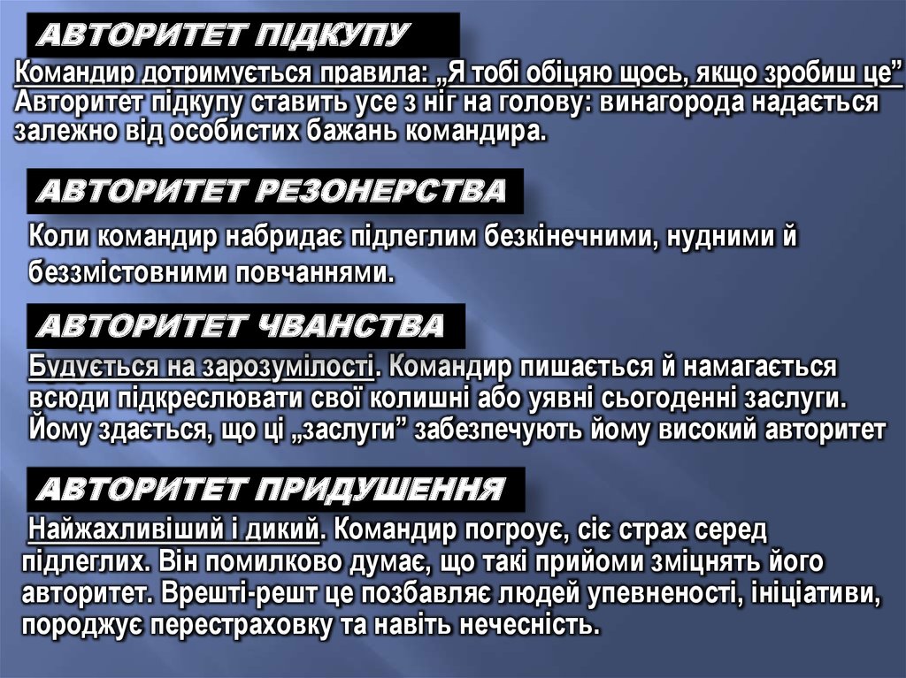 АВТОРИТЕТ ― заслужена довіра, якою користується командир