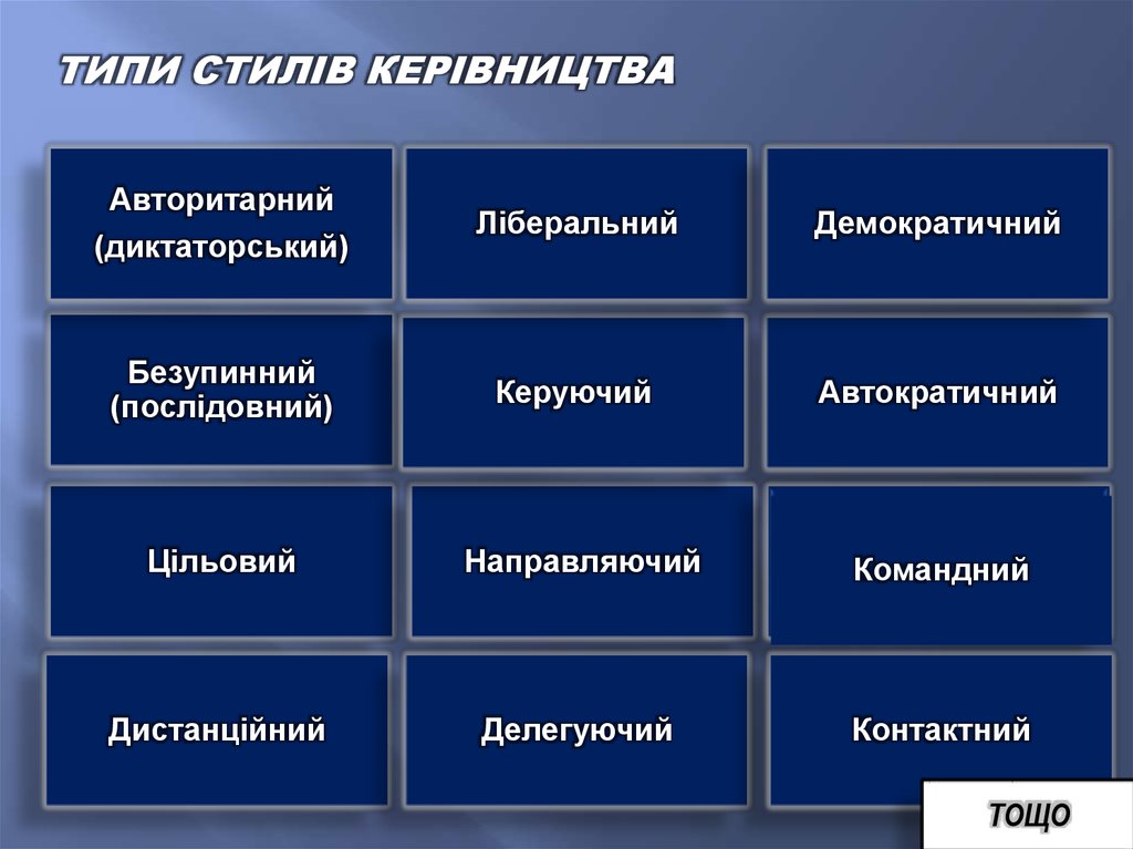 ТИПИ СТИЛІВ КЕРІВНИЦТВААвторитарний