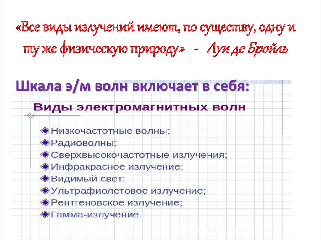 «Все виды излучений имеют, по существу, одну иту же физическую природу» - Луи де Бройль