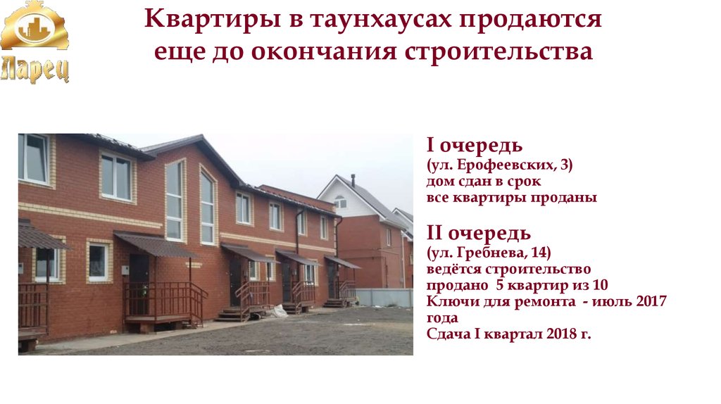 Квартиры в таунхаусах продаютсяеще до окончания строительства
