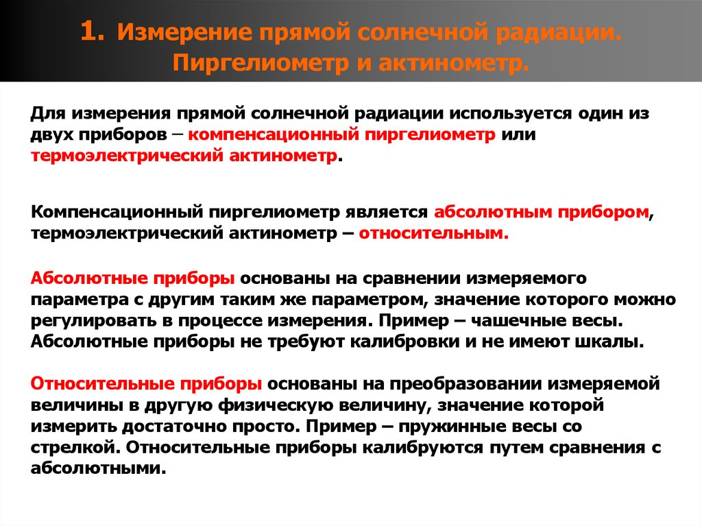 1. Измерение прямой солнечной радиации.Пиргелиометр и актинометр.