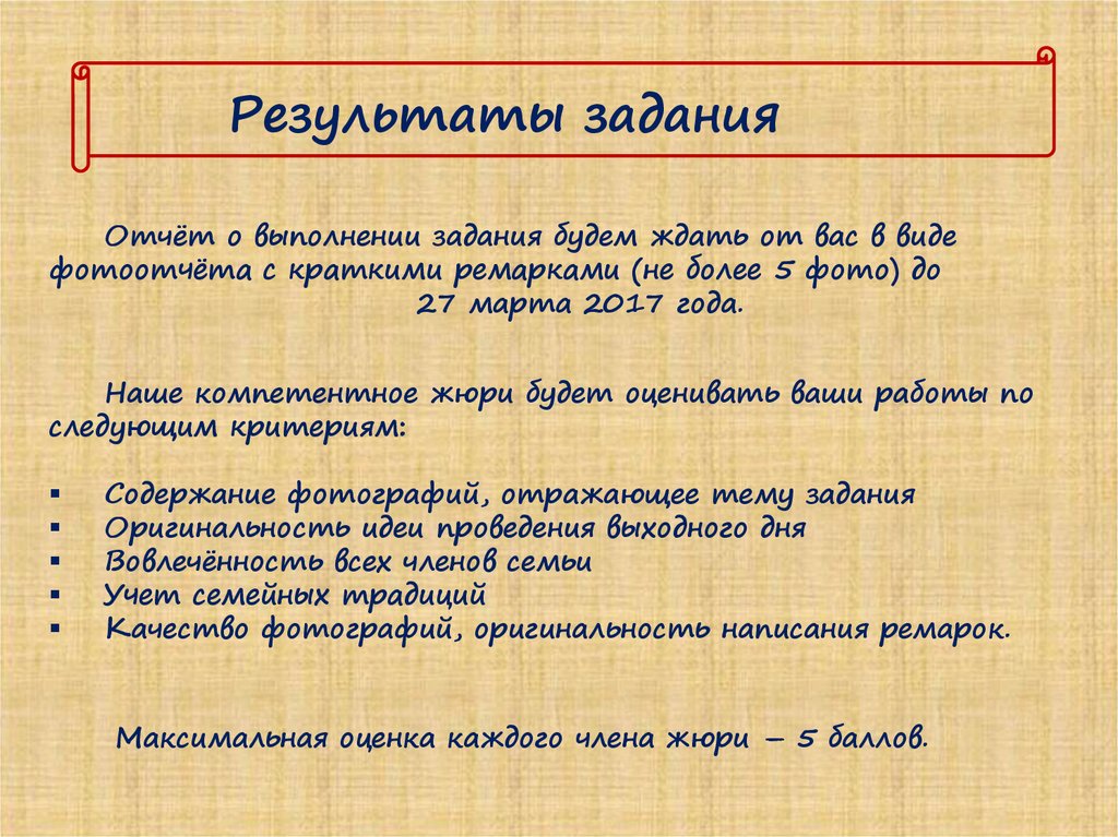 Результаты заданияОтчёт о выполнении задания будем ждать от вас в виде