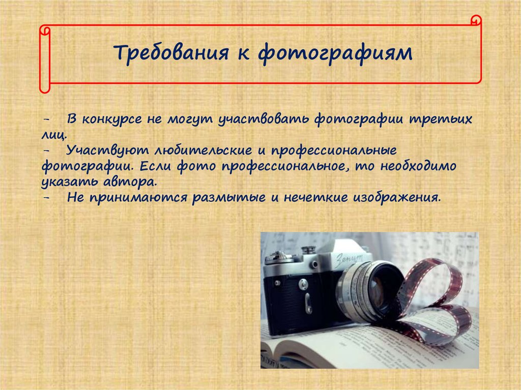 Требования к фотографиям- В конкурсе не могут участвовать фотографии третьих