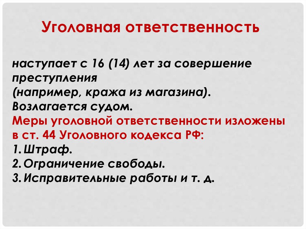 Уголовная ответственностьнаступает с 16 (14) лет за совершение