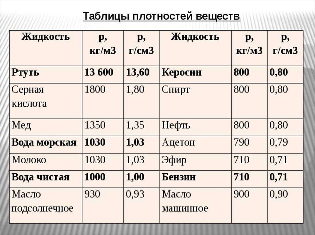 плотности жидкости