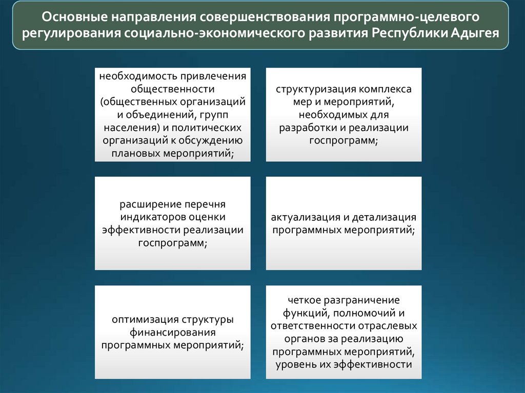 Основные направления совершенствования программно-целевогорегулирования социально-экономического развития Республики Адыгея