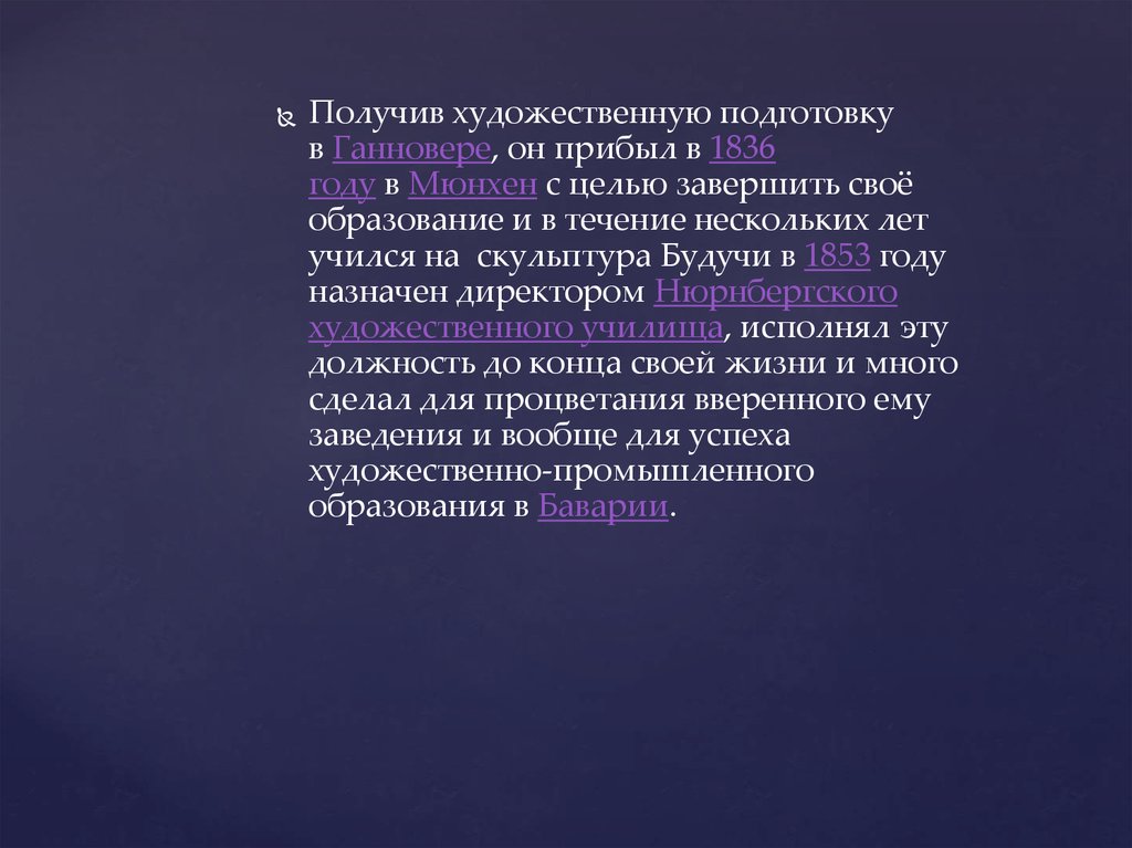 Получив художественную подготовкув Ганновере, он прибыл в 1836