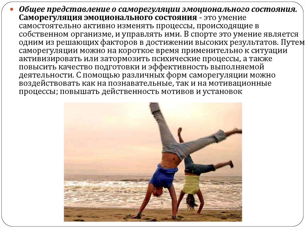 Общее представление о саморегуляции эмоционального состояния.Саморегуляция эмоционального состояния - это умение