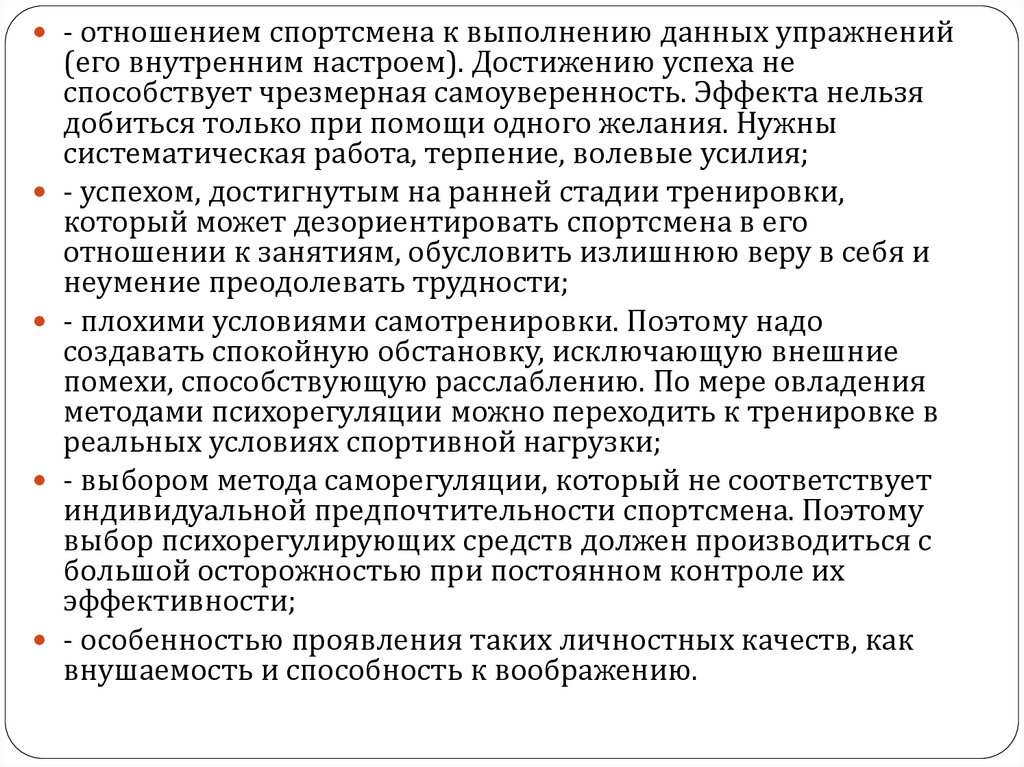 - отношением спортсмена к выполнению данных упражнений(его внутренним настроем). Достижению успеха не